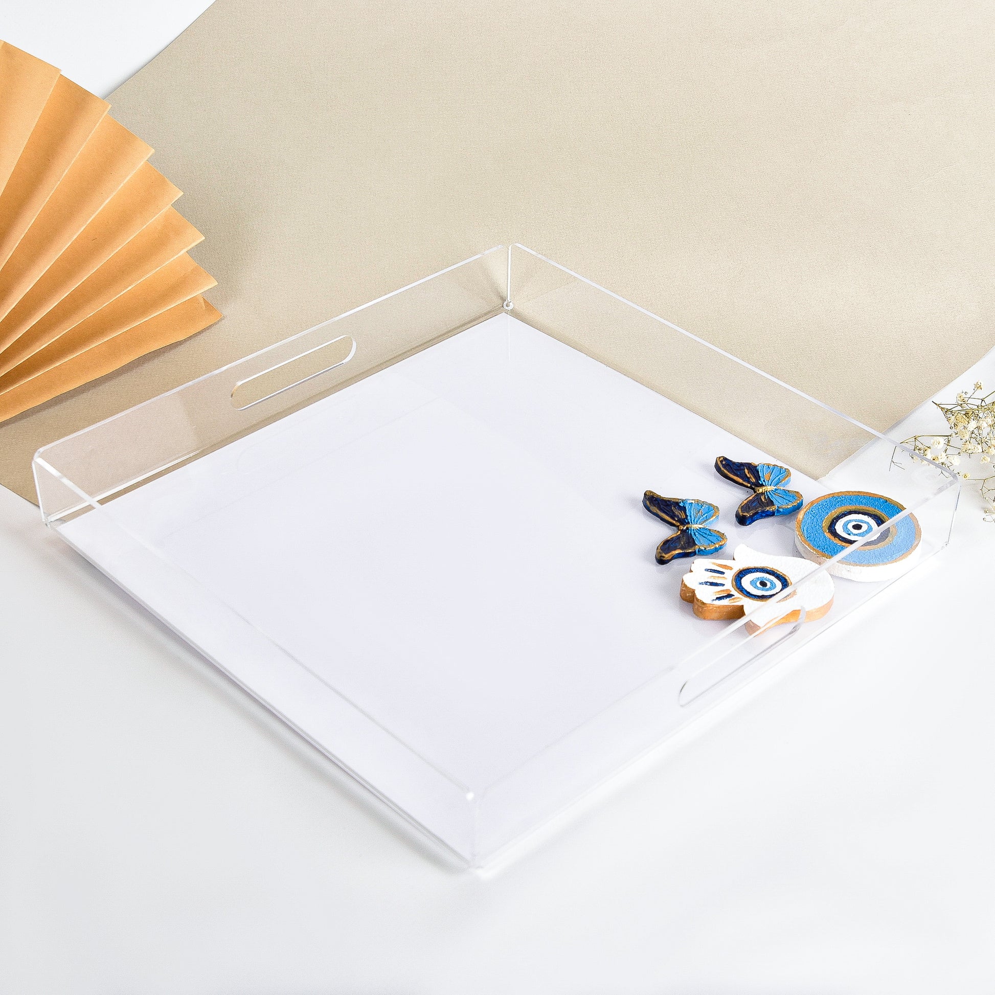 Embossed Eyes, Fatima Hands and Butterflies Handmade Plexi Long Box 30X30CM