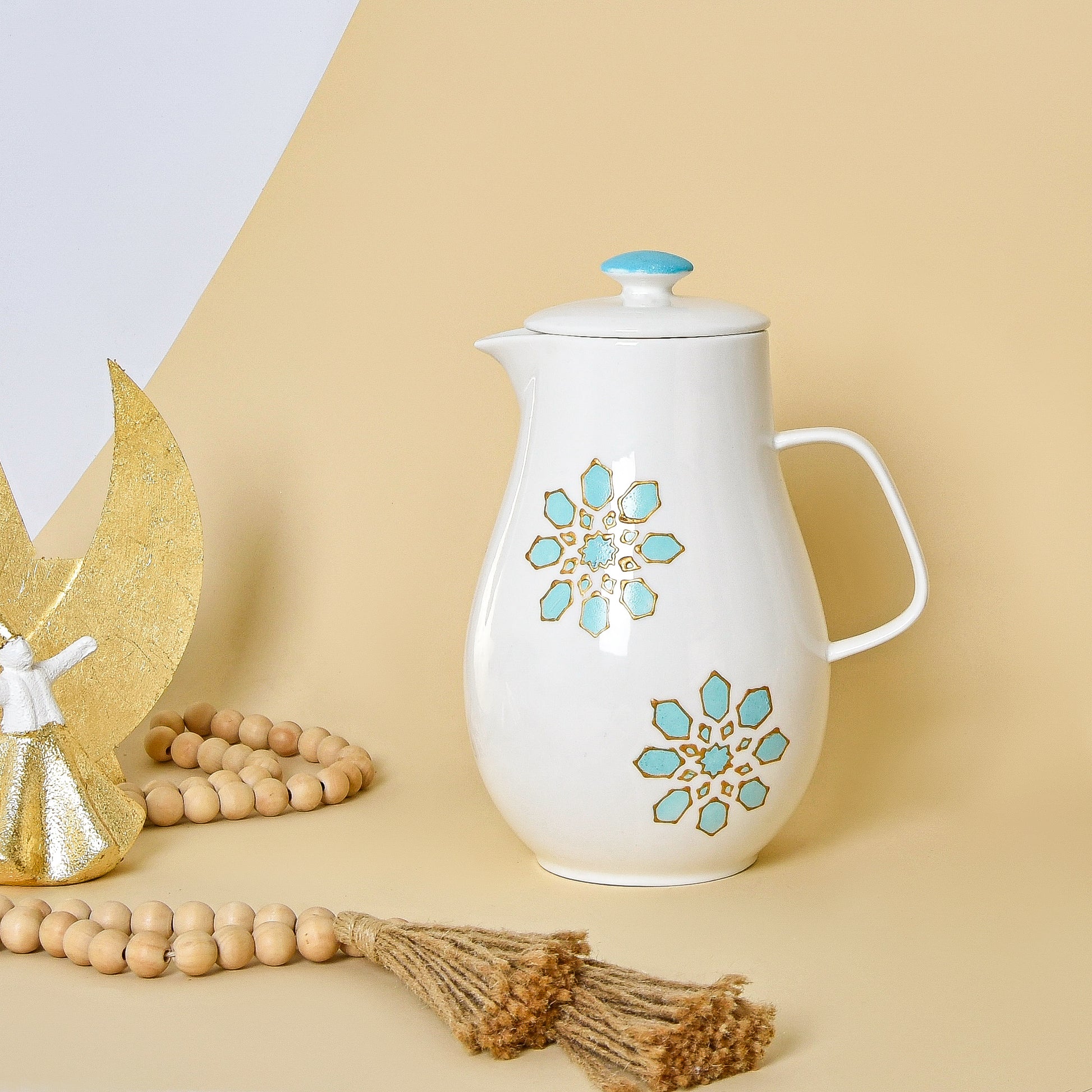 Light Blue & Gold Islamic Motifs – Transparent Porcelain Water Jug